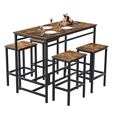 Enjoy pub style dining with our 36 round bar table. Awqm bar table and chairs set industrial counter height pub table with 4 chairs bar table set 5 pieces dining table set home kitchen breakfast table, rustic brown. Bar table standard height bar tables are taller; This set includes one bar height table and three bar stools. Our counter height tables stand 36 tall. Because counter height tables are typically 4 to 6 inches higher than standard tables, buy counter height bar stools or chairs to match. $10.00 coupon applied at checkout. The table and stools are built on a metal base with four straight legs, crossbars, and a stretcher for a stylish and stable frame. They usually fall within 40 to 43 inches, with most of them landing at 42 inches (about 107 cm). It's crafted from a mix of solid and engineered wood in a light brown and espresso hue that blends in easily with any color palette. $8.00 coupon applied at checkout. The table and stools have a sleek, chrome base for a modern feel. A spacious round pine wood table top perched atop a utilitarian steel frame creates a convenient place for holding food and drinks while the height adjustable footrest provides a comfortable spot to rest your feet.